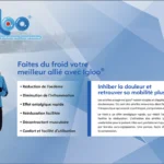 Particulièrement efficaces en phases de douleurs aiguës, l’effet antalgique du froid réduit les inflammations et les œdèmes facilitant ainsi la rééducation.