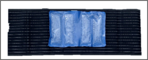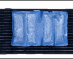1/ Ouvrir la ceinture abdominale et positionner la poche de froid (poche sortie du congélateur) à l’intérieur de la ceinture en la scratchant grâce aux velcros.
